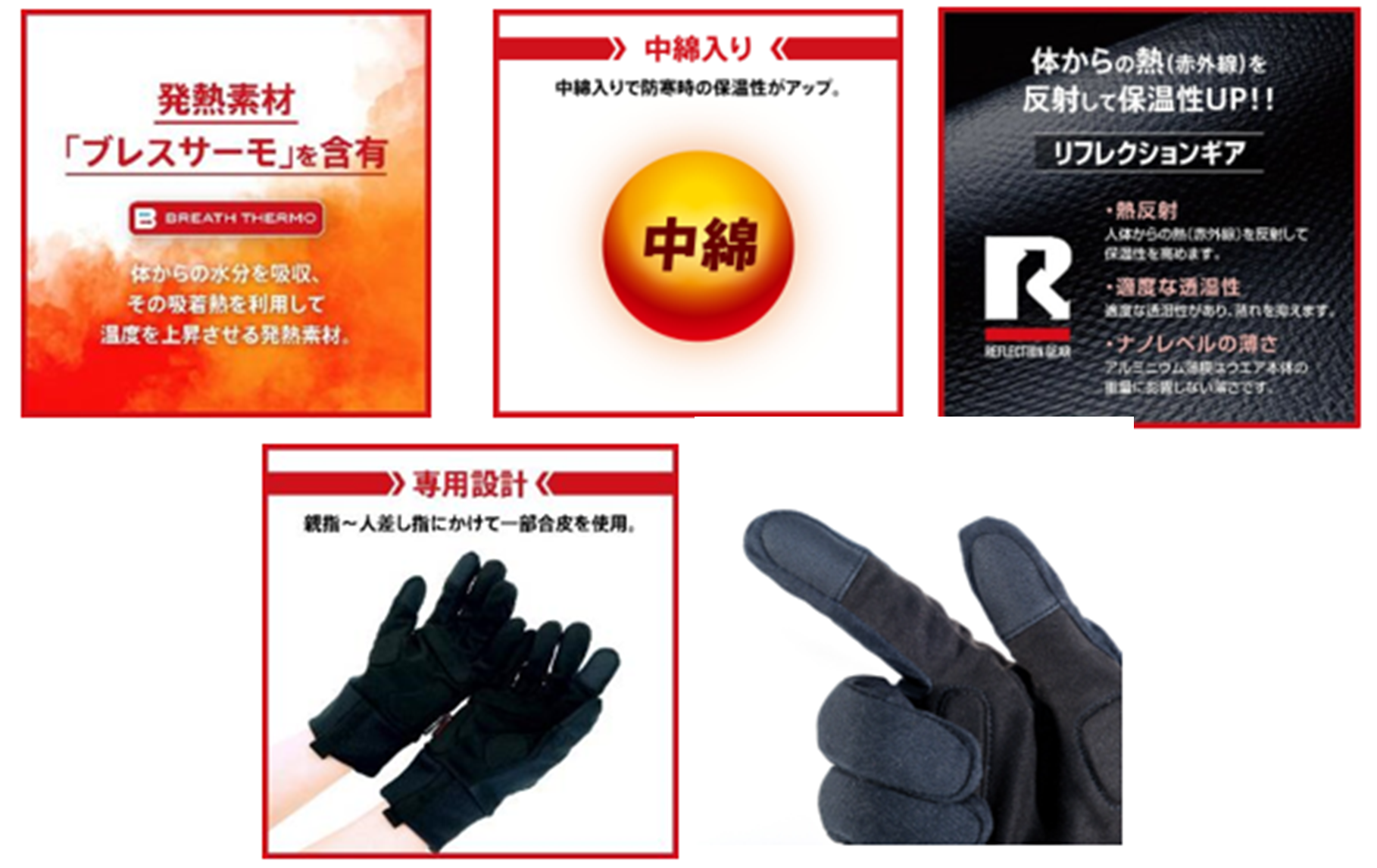 ・薄手で春先や秋口には指切りグローブと組み合わせも可能
