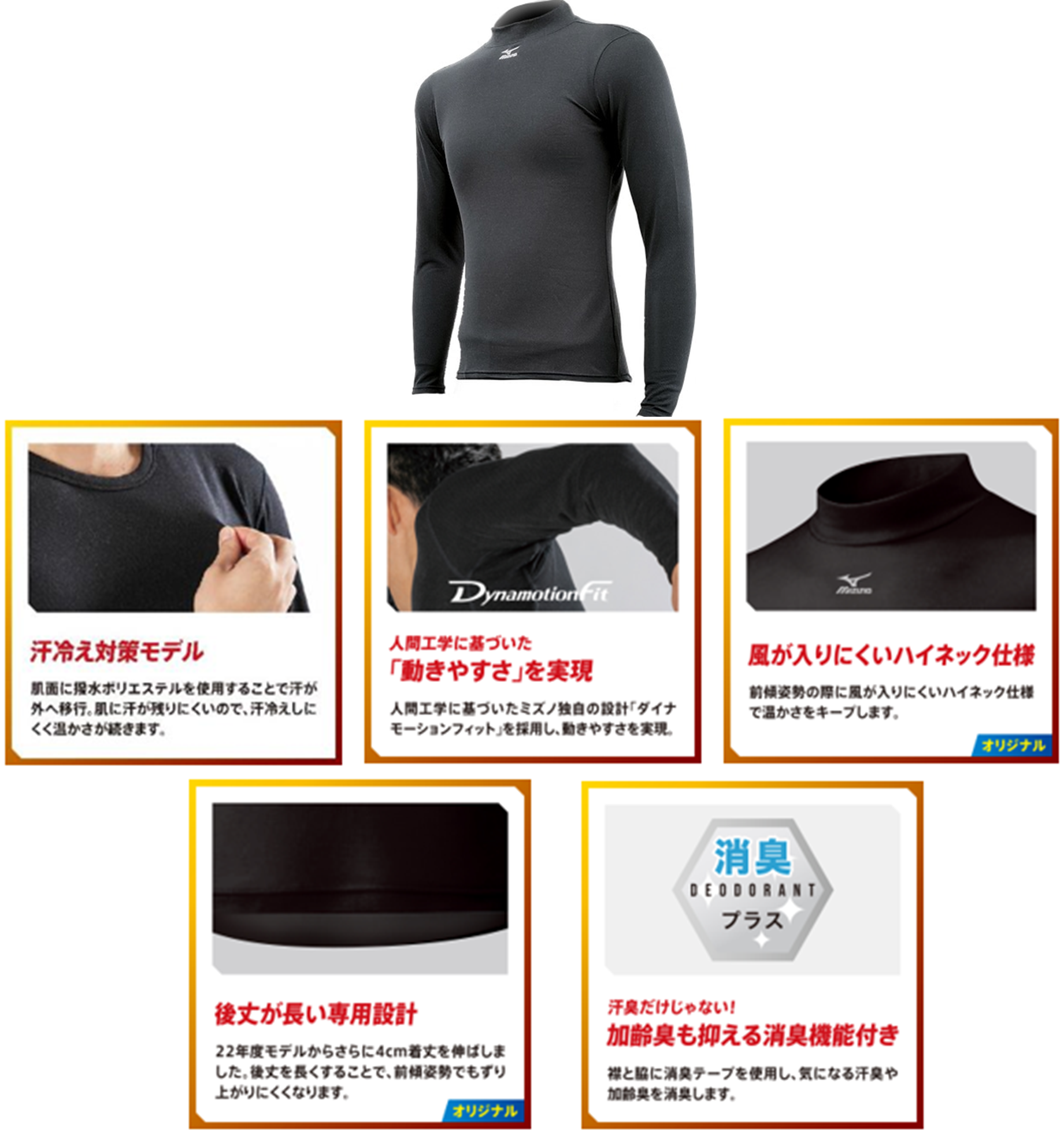 特長:・吸湿発熱素材ミズノ「ブレスサーモ」を採用