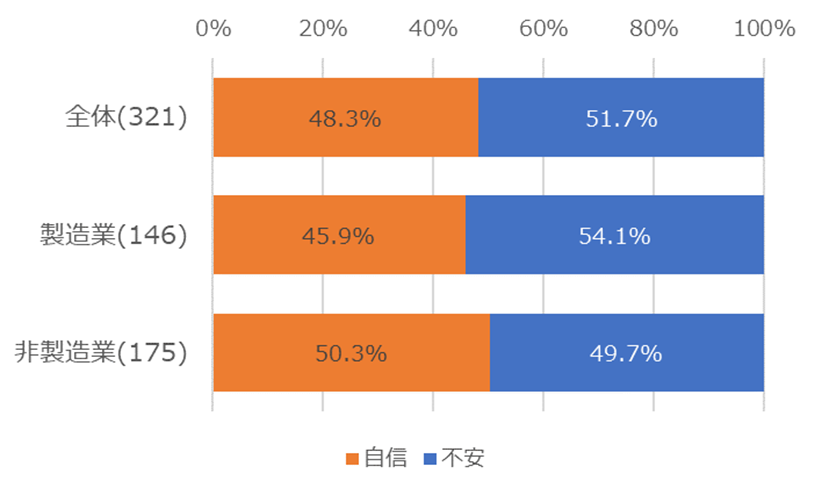 に達しました。また、自社の今後の競争力・成長についても「不安である」の合計が過半数となっています。【図1-①】