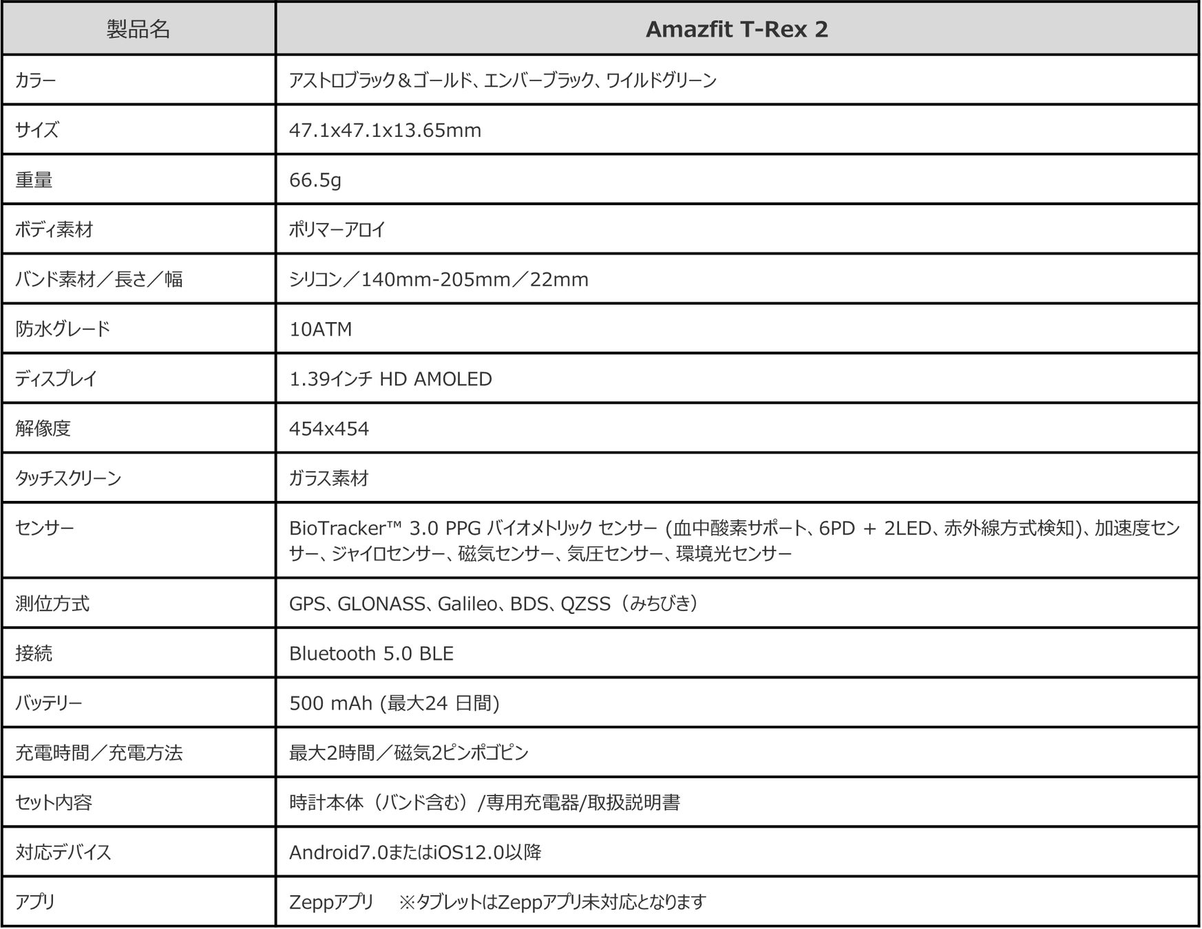 ・商品URL:https://www.amazfit.jp/products/amazfit-t-rex-2