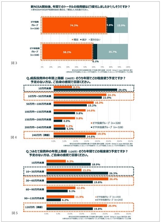 新NISAに関連する共通の質問の他、ETFに関連するそれぞれの質問を行い、その結果、投資傾向やETF投資に関する意識・考え方の違いが明らかになりました。