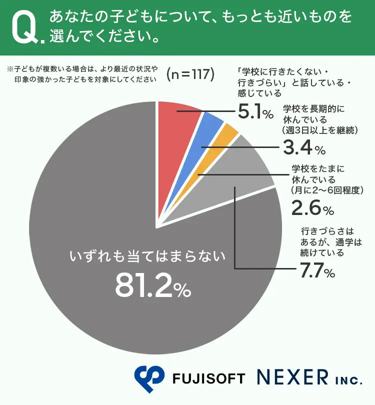 約2割の保護者が「子どもは学校に行きづらさを感じている」と回答 行政の取り組み充実を求める実態が明らかに 富士ソフトとNEXER、小学生から高校生の子どもがいる保護者に調査を実施