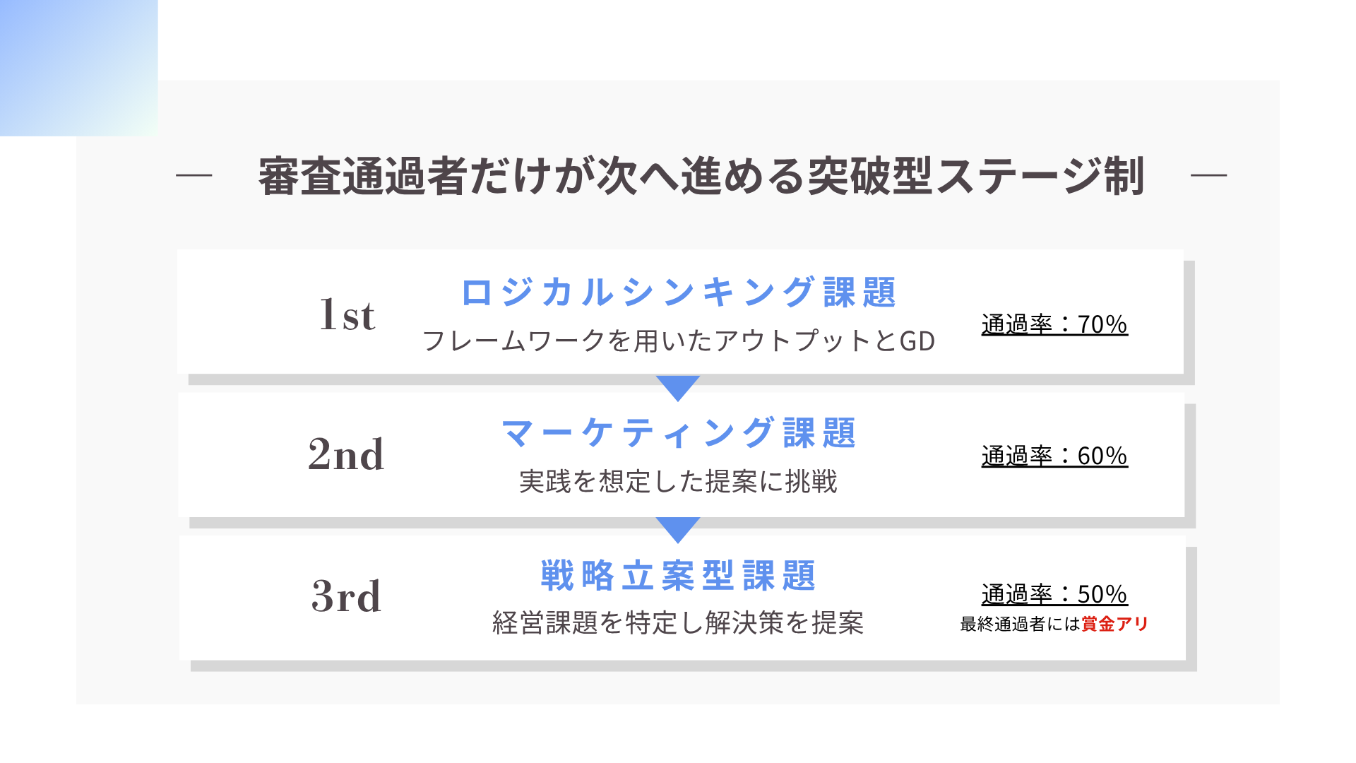インターンは3ステージ制で、各課題を突破しなければ次へ進めないサバイバル形式。最終突破率はわずか21%という高難度設計です。