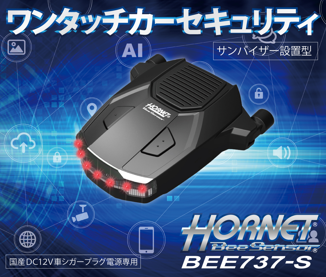 2025年2月2日に「ワンタッチカーセキュリティBEE737-S」を発売しました。 ●メインユニットをサンバイザーに設置し、電源をシガーソケットに差し込むだけで設置が完了するので配線工事が不要です。