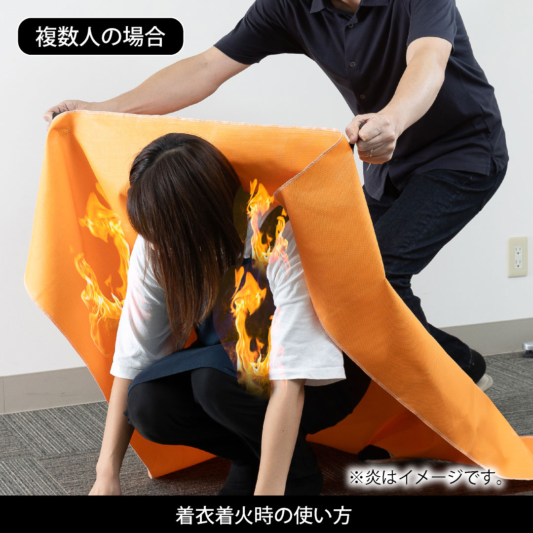 ①ブランケットを火元に被せる、巻く、被るとシンプルで直感的に使用できます。