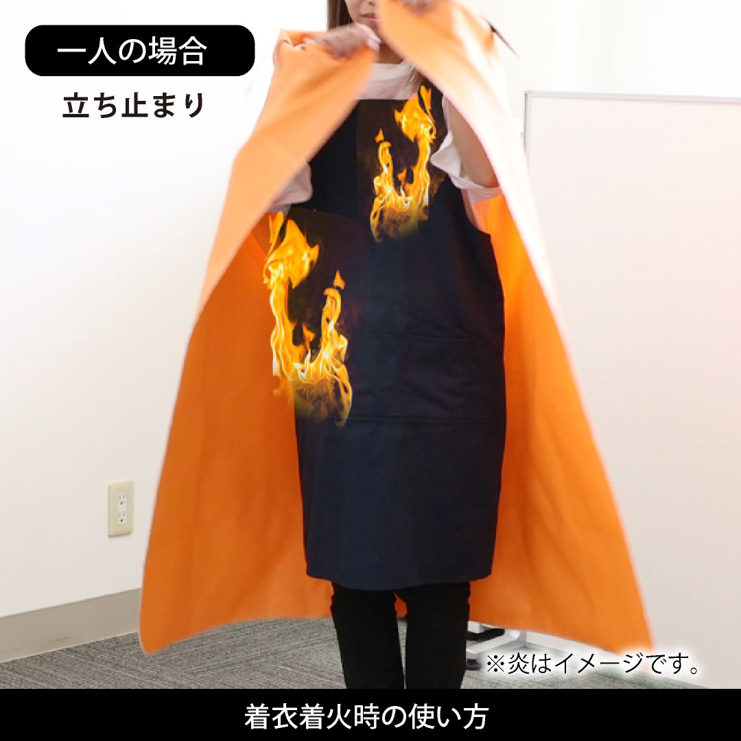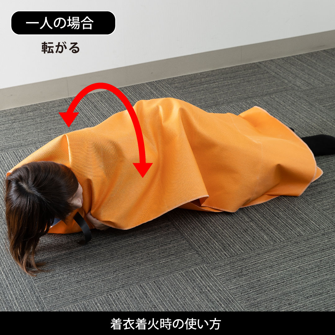 服が燃えている人をファイヤーブランケットで包みます。