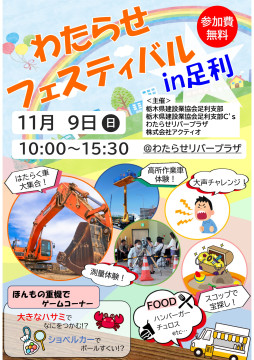 総合建設機械レンタルの株式会社アクティオは、2025年11月9日(日)に栃木県足利市にある「わたらせリバープラザ」で開催される「わたらせフェスティバル in 足利」に出展いたします。